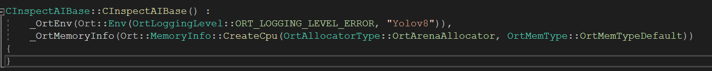 onnxruntime 사용 시 주의사항 - 2 class 내부에서 Ort::Env, Ort::MemoryInfo 를 멤버변수로 선언할 때, Class 생성자에서 초기화 리스트 방식으로 사용하여야 합니다. 위와 같이 초기화 리스트 방식으로 하지 않을 경우, Ort::Env, Ort::MemoryInfo 가 제대로 선언되지 않습니다. 카테고리 없음 2025.01.10